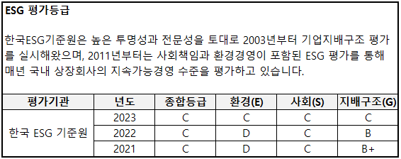 주식회사 리가켐 바이오사이언스 ESG 평가등급 현황입니다.