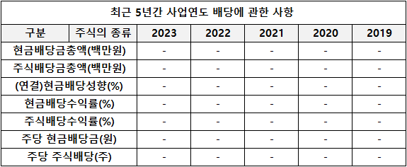 주식회사 리가켐 바이오사이언스 최근 5개년 배당정보입니다.